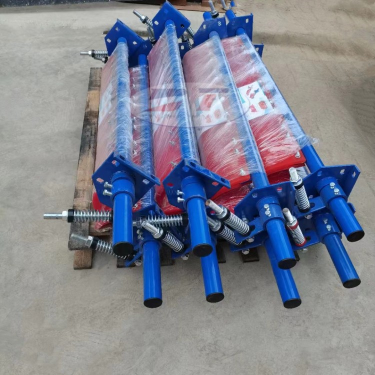 二段合金清掃器主要清掃小顆粒及介質(zhì),有效確保輸送帶清潔。其東泰機(jī)械二段清掃器。結(jié)構(gòu)特性和優(yōu)點:結(jié)構(gòu)新穎,獨有緩沖補(bǔ)償裝置,抗輸送帶沖擊振蕩性能好,清潔效果好,不易傷帶高功能標(biāo)準(zhǔn)組件系統(tǒng)包括:系統(tǒng)支撐管,支撐管延長件和彈性緩沖裝置來自特別制作的高品質(zhì)硬質(zhì)合金刀片,具有超長的使用壽命調(diào)節(jié)機(jī)構(gòu)專利設(shè)計,方便刮片與輸送帶的接觸壓力的調(diào)整以及刮刀片磨損后調(diào)節(jié)側(cè)的金屬刮片向外呈下降圓弧形,有效的防止刮片邊沿?fù)p傷皮帶表面光滑的PE刀片護(hù)板,可很好的防止物料堆積和結(jié)垢特性和優(yōu)點:較好的清潔效果可選擇轉(zhuǎn)換機(jī)械部件裝配在輸送帶機(jī)架外部適合雙向運行輸送帶安裝,調(diào)整,維護(hù)方便,維修工作量小運送的物料濕度至少應(yīng)在5%以上。特點:刮料效果優(yōu)異刮刀無跳動之虞:刮刀與固定座采用鳩尾槽結(jié)合,并有消除余隙之頂緊裝置。三層式刮刀組,具有可分離式固定座,可在料斗側(cè)邊抽換,安裝或維修非常簡便。