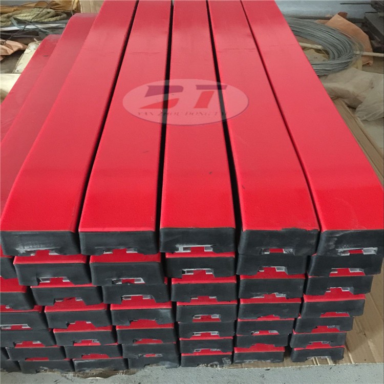對于特殊復(fù)雜工況,也可以提供920萬超高分子聚乙烯板材的緩沖條,磨損率不大于0.1,更加耐磨。緩沖條的橡膠層,天然橡膠含量高,彈性好,非常柔韌,吸收沖擊能力強(qiáng),自我清潔功能強(qiáng)。緩沖條采用熱硫化工藝,在高溫高壓狀態(tài)下使高彈性橡膠與高分子聚乙烯板材高強(qiáng)度粘接,牢固可靠,不分離。