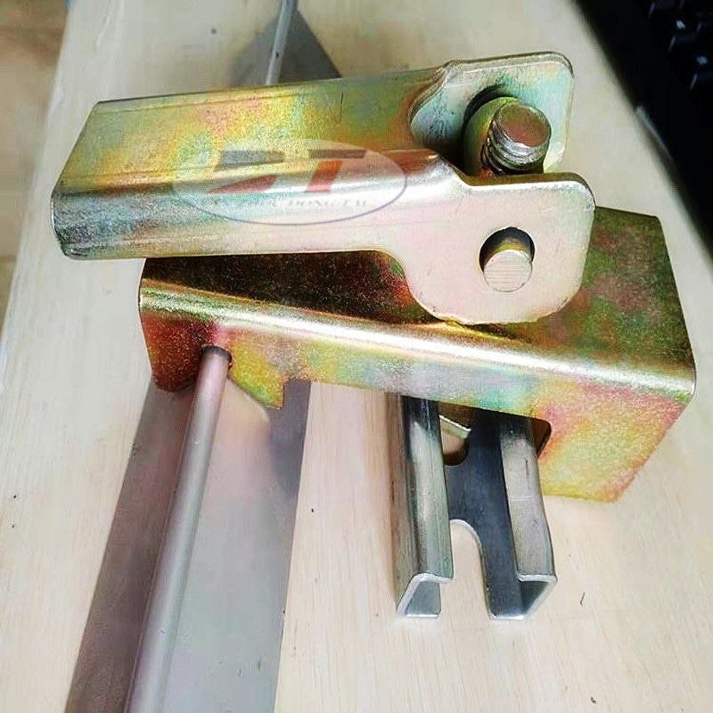3、手動旋轉(zhuǎn)壓緊手柄,適當時向上(下)推到底,可對角鋁施加足夠的壓力,保持裙板位置,且壓緊手柄不會松動脫落。